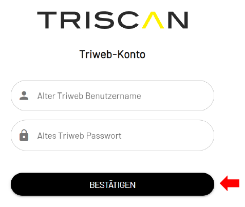 Geben Sie Ihren aktuellen Benutzernamen und Ihr Passwort für TRIWEB ein und klicken Sie auf "Bestätigen".