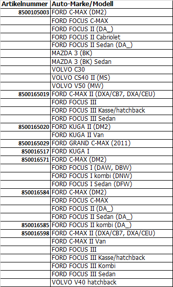 Der Montagesatz - Triscan # 8500 16400 – ist der gleiche für alle 9 Querlenker und wird als loses Set verkauft. Er passt zum Querlenker hinten von u.a. diesen sehr populären Automodellen: