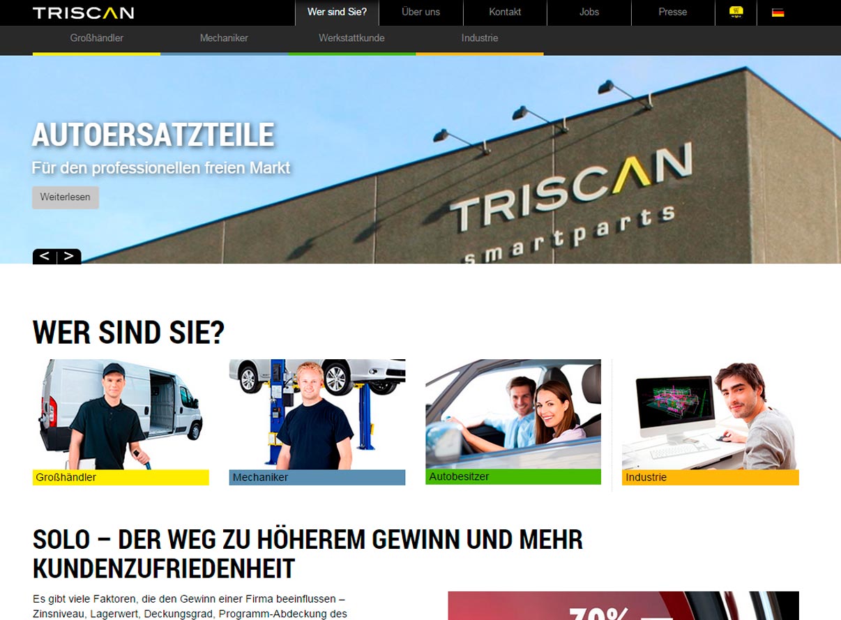 Bisher war unsere Homepage primär auf die Kommunikation mit unseren Kunden, also Großhändlern auf dem freien Aftermarket, ausgerichtet. Der Wunsch nach Information bei den Verbrauchern, sowohl Werkstätten wie auch Autobesitzern, steigt jedoch ständig, und die neue Seite ist dieser Entwicklung angepasst. Auf der Startseite hat man als Besucher daher die Möglichkeit, sich als Distributeur/Großhändler, Mechaniker, Autobesitzer oder Industrie zu erkennen zu geben. Nachfolgend wird dem Besucher dann ausschließlich die für ihn relevante Information zur Verfügung gestellt.