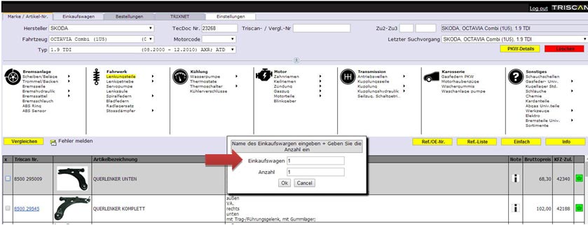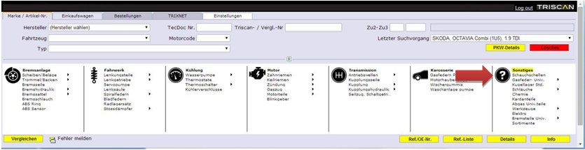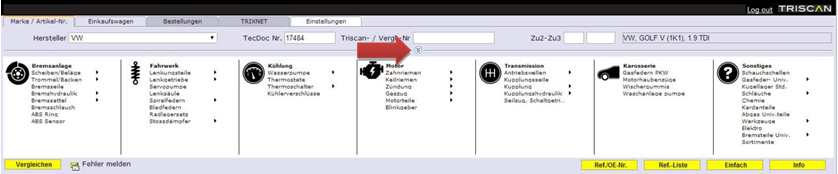 Die Felder Triscan Nr. und OE-/Refnr. sind zusammengeführt. Egal, ob Sie nach einer Triscan Artikelnummer, eine OE-Nummer oder einen Querverweis suchen, es kann alles in diesem Feld eingegeben werden.