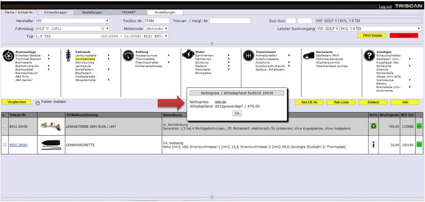 Bedeutet, dass es sich um einen Artikel mit Altteilepfand handelt. Durch Klicken auf das Symbol erhalten Sie den Nettopreis und Altteilepfand.