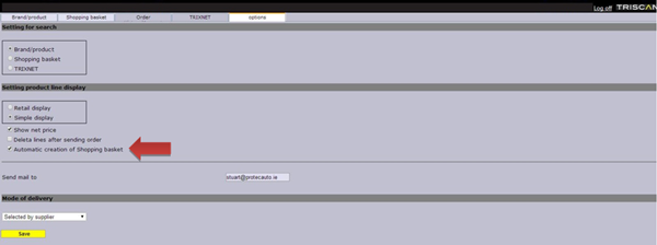 Another new feature is Automatic creation of Shopping basket. If you forgot to create a shopping basket manually before you started adding articles to your shopping basket, a shopping basket is automatically created. This feature can be turned on or off in the Settings tab. Turn on or off the check mark on or off next to automatic creation of shopping basket.