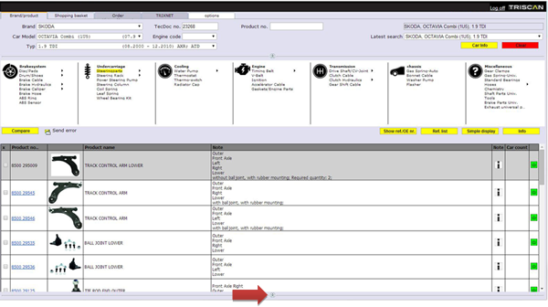 The fields “Product no.” and “OE / Ref. no” have been merged. Whether you are looking up a Triscan number, an OE number or a cross-reference, only this field is used.