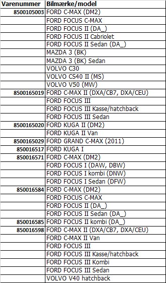 Vi har oplevet stor efterspørgsel på monteringssæt med specialbolte til i alt 9 bærearme til Ford, Mazda og Volvo. Den bagvedliggende og overvejende grund er, at boltene SKAL udskiftes, idet der er tale om låsebolte, som ikke må genanvendes. Hertil kommer at boltene ofte er medtaget af korrosion og at mekanikeren ofte er nødt til at skære boltene over ved udskiftning af bærearmen.