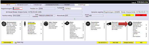 Under fanen Bilmærke/varenr. er felterne varenr. og OE-/refnr. slået sammen. Hvad enten du søger på et Triscan varenummer, et OE-nummer eller en krydsreference, er det kun dette felt der bruges.
