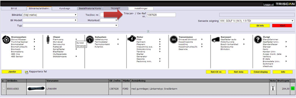Fält Triscan nr. och OE / Ref. har slagtis samman. Om du söker på ett Triscan nummer, ett OE nummer eller en korsreferens, är bara detta fält används.