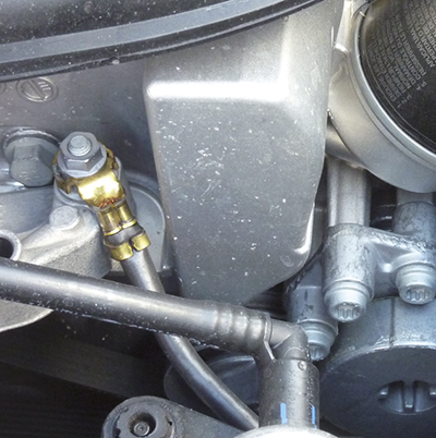 Kontrollera också att jordkabeln mellan bilens motor och kaross är korrekt monterad och intakt (bild 3) - därigenom utjämnas förekomsten av statisk elektricitet mellan bränsletillförselsystemet och bilens kaross. En defekt jordkabel eller en dålig anslutning kan påskynda skadorna på grund av elektrolys.