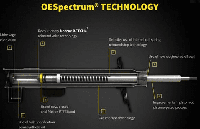 Monroe OESpectrum er en nyere, men også lidt dyrere støddæmper end Monroe Reflex. Den nye serie anvender Monroes patenterede M-RTECH®2 Rebound Valving Technology™, hvor ventilsystemet indeholder to sæt af præcist kalibrerede ventilskiver, som er separeret af en excentrisk spiralformet skive, hvilket medvirker til at eliminere uønsket og pludselige ændringer i dæmpningskraften. Hertil kommer at dæmperens olie, pakdåser og en intern skruefjeder mere effektivt stopper opspring. Desuden er forkromningen af stempelstangen forbedret og et teflonbånd om stemplet nedsætter friktion.