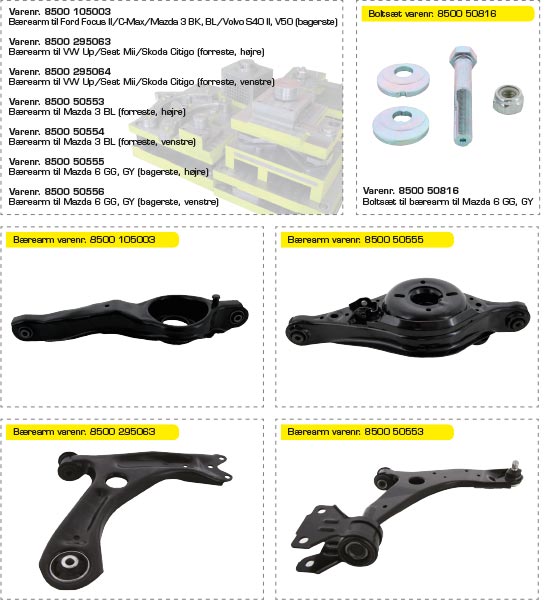 Triscan har fået udviklet værktøjer til fremstilling af nogle af de mest gængse bærearme. Vi oplever, at der begynder at være en jævn efterspørgsel på bærearme til disse populære bilmodeller – og hos Triscan står vi klar til at levere dem til dig!