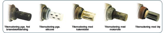 • Fosfor fra motorolie der har fundet vej til forbrændingskamrene (utætte ventilstyr og ventiler, slidte stempelringe eller cylindre)