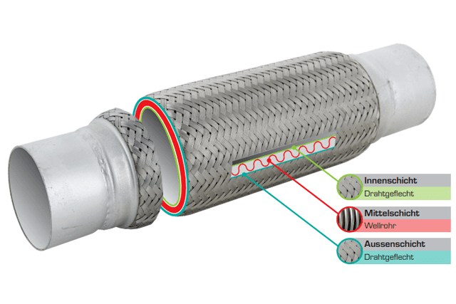 Alle Flexrohre sind aus rostfreiem Stahl gefertigt - alle Klemmrohrverbinder sind aus galvanisiertem Stahl gefertigt. Die Flexrohrverbinder sind in einer starken 3-Schicht Konstruktion aufgebaut, die eine lange Lebensdauer gewährleistet. Die verschiedenen Ausführungen sichern eine Vielfalt von Anwendungsmöglichkeiten.