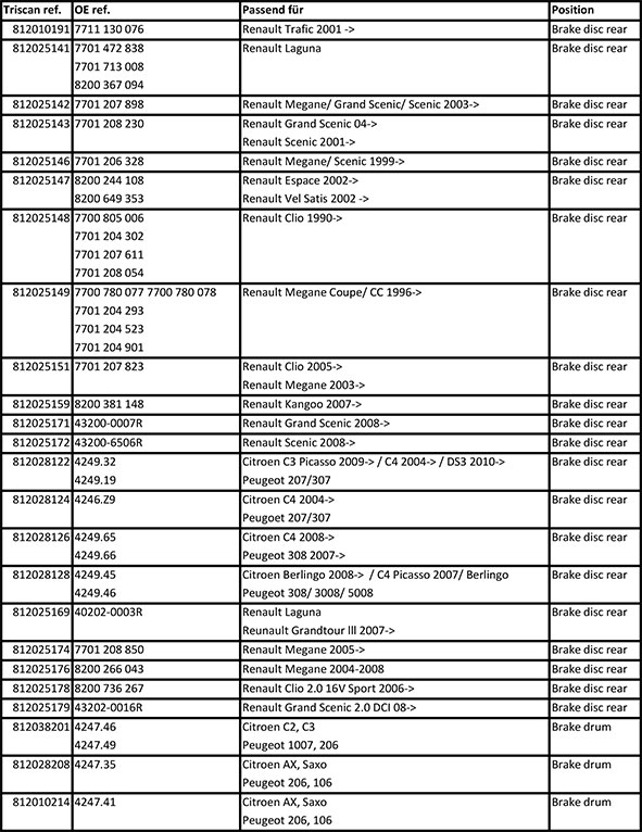 Triscan ist in der Lage, Bremsscheiben mit integrierten Lagern für Renault, Citroën, Opel, Nissan und Peugeot zu liefern.