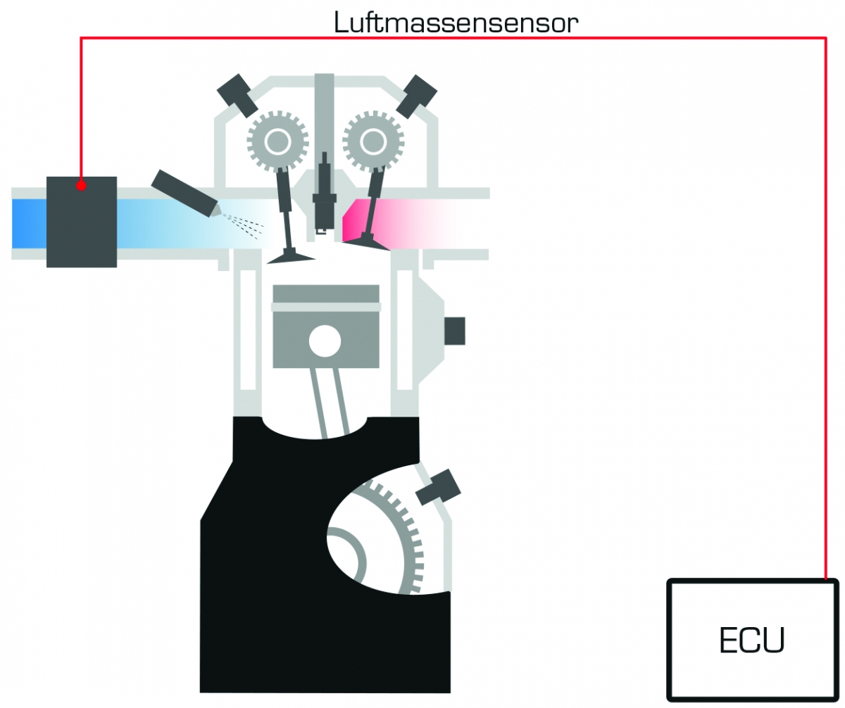 Luft und Brennstoff müssen in einem genau definierten Verhältnis gemischt werden, wenn das Fahrzeug die gesetzlichen Anforderungen für Emmissionen einhalten und nicht mehr Brennstoff als nötig verbrauchen soll. Der Luftmassenmesser, der auf der Luftansaugseite angebracht ist, registriert den jeweiligen Flow der Luft in die Brennkammer. Diese Information wird an die Motorsteuerung des Fahrzeugs (ECU) weitergegeben, die die Messung u. a. dazu benutzt, das Mischverhältnis von Luft und Brennstoff zu regulieren.