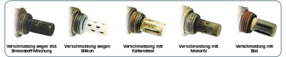 • Phosphor aus Motoröl, das seinen Weg in die Brennkammern gefunden hat (Aufgrund von undichten Ventile und abgenutzte Kolbenringen oder Zylinder)