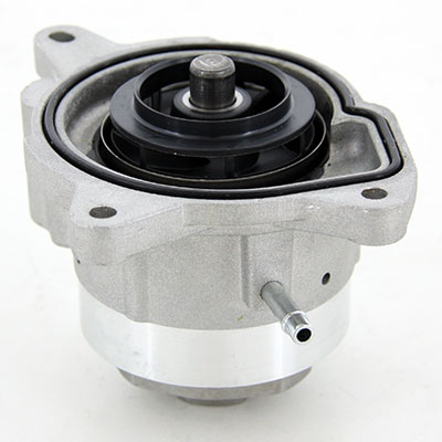 In der neuen ON/OFF Wasserpumpe kann der Durchstrom von Kühlflüssigkeit im Kühlsystem durch eine pneumatisch aktivierte Kappe, die das Schaufelrad der Wasserpumpe einkapselt, unterbrochen werden. Die Kühlflussigkeit und der pneumatische Mechanismus, der die Kappe steuert, werden im Gegensatz zum traditionellen Dichtungsring der Wasserpumpe durch drei Membranen voneinander getrennt. Diese Membrankonstruktion funktioniert selbst unter schwierigsten Bedingungen sehr zuverlässig. Der Mechanismus zur Steuerung der Kappe ist als eine sogenannte „failsafe“ (fehlsichere) Funktion konzipiert, d. h. die Wasserpumpe arbeitet bei fehlendem Vakuum auf herkömmliche Art und Weise.