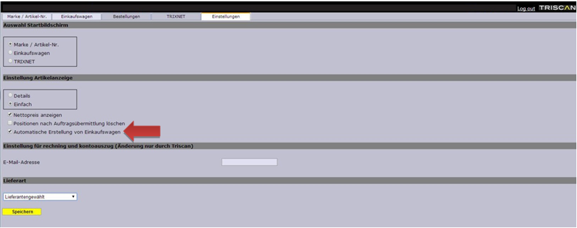 Neu ist auch die Funktion: Automatische Erstellung von Einkaufswagen. In dem Fall, dass Sie keinen Einkaufswagen manuell erstellt haben, bevor Sie Waren dem Einkaufswagen hinzufügen, erstellt sich ein Warenkorb automatisch. Diese Funktion kann unter Einstellungen ein- oder ausgeschaltet werden. Schalten Sie das Häkchen an oder aus neben Automatisches Erstellung von Einkaufswagen.