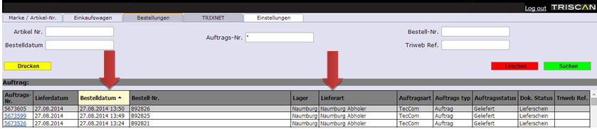 Unter Bestellungen ist es nun möglich, den Zeitpunkt der Bestellungsabgabe und Art der Lieferung zu sehen.