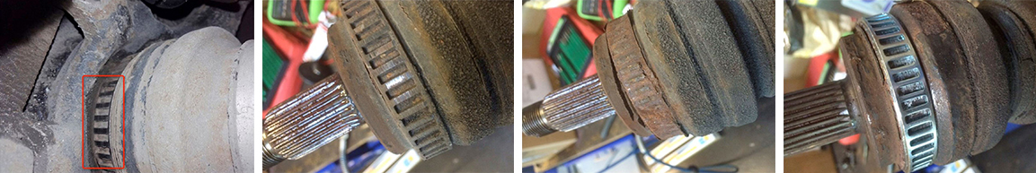 Fotos von Antriebswellen mit defekten und ausgetauschten ABS-Ringen (Autodata)