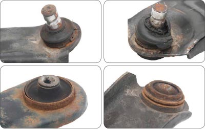 In the case of a sheet steel track control arm where the ball joint is pressed into the track control arm, it is not always sufficient to replace the ball joint - even if the bushes are in order. Since the contact surface between the ball joint and the track control arm is quite limited for this type of arm, there are two details that must ALWAYS be considered when replacing a ball joint. Firstly, make sure that there are no indications of cracks around the track control arms / holes where the ball joint is located. Secondly, ensure that the holes are circular and have not gotten expanded due to general wear and tear or previous replacements. Even though this type of ball joint is often secured with a locking ring, this does NOT guarantee that the ball joint stays in place in all situations.