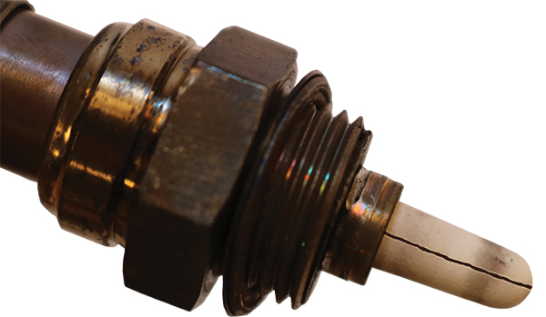 CRACKED LAMBDA ELEMENT (protective cap removed for examination) |