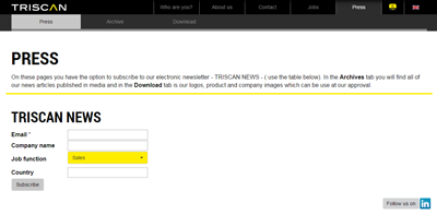 If you prefer to be kept informed through our electronic newsletter Triscan News, you have the opportunity to sign up under the menu Press. Here you can also choose Archive to get access to all the news articles in chronological order by year.