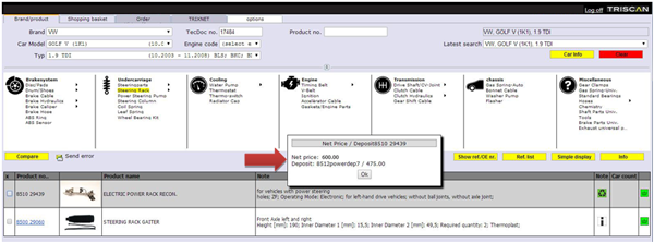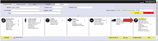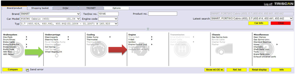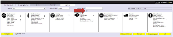 The fields “Product no.” and “OE / Ref. no” have been merged. Whether you are looking up a Triscan number, an OE number or a cross-reference, only this field is used.