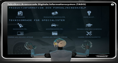 Skärmdump från Tennecos TADIS systemet - ett tekniskt område för specialister