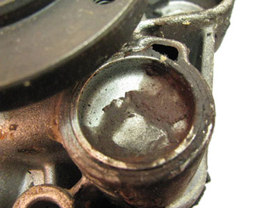 Läckande vattenpump med ett spår av kalk i kylsystemet.Vattenpumpen utses för ofta och helt felaktigt som orsaken vid ett haveri. I de flesta fall är det dock inte vattenpumpen, men andra förhållanden som så småningom orsakar vattenpumpen att haverera.